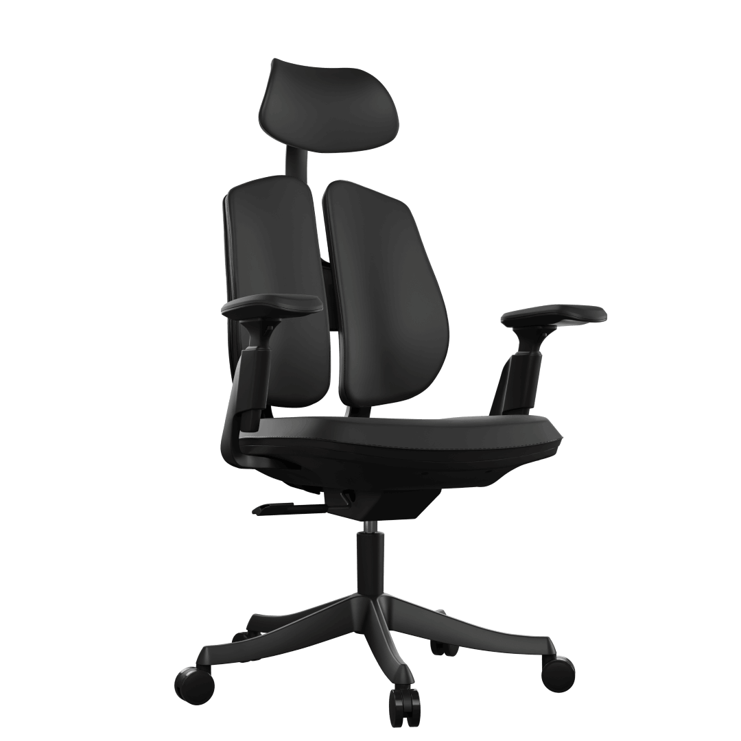 Innowacyjne dwuczęściowe oparcie posiada niezależne mocowanie obu części. Każda część oparcia porusza się na wszystkie strony i łatwo dostosowuje się do pozycji siedzącej. Twoje plecy zawsze będą miały idealne podparcie, co ułatwi Ci pracę.