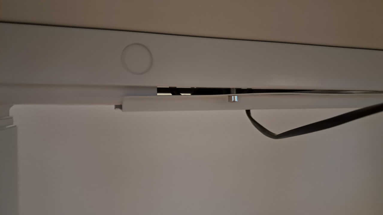 Drugą (powiązaną) przeszkodą było przymocowanie nóg do deski, gdzie konieczne było nie tylko ich prawidłowe wyśrodkowanie, ale także określenie, jak daleko nogi powinny znajdować się od krawędzi deski (co jest najlepsze np. dla stabilności stołu). Nigdzie tego nie wyczytałem (ostatecznie ustaliłem to na podstawie uchwytu na kable patrz wyżej), jak również tego, że przychodzi czysta płyta i to co jest do niej montowane jest mocowane za pomocą wkrętów samogwintujących (łącznie z driverem). Jest to bardziej pracochłonna metoda, niż gdyby otwory na śruby były wstępnie wykonane, a nogi i sterownik byłyby po prostu przykręcone zwykłymi śrubami, tak czy inaczej daje to większą swobodę w umieszczaniu elementów (takich jak sterownik) na stole dokładnie tak, jak chcesz, więc jest to plus i minus jednocześnie, szkoda tylko, że nie jest to nigdzie wspomniane (lub nie mogłem tego znaleźć w informacjach o stole).