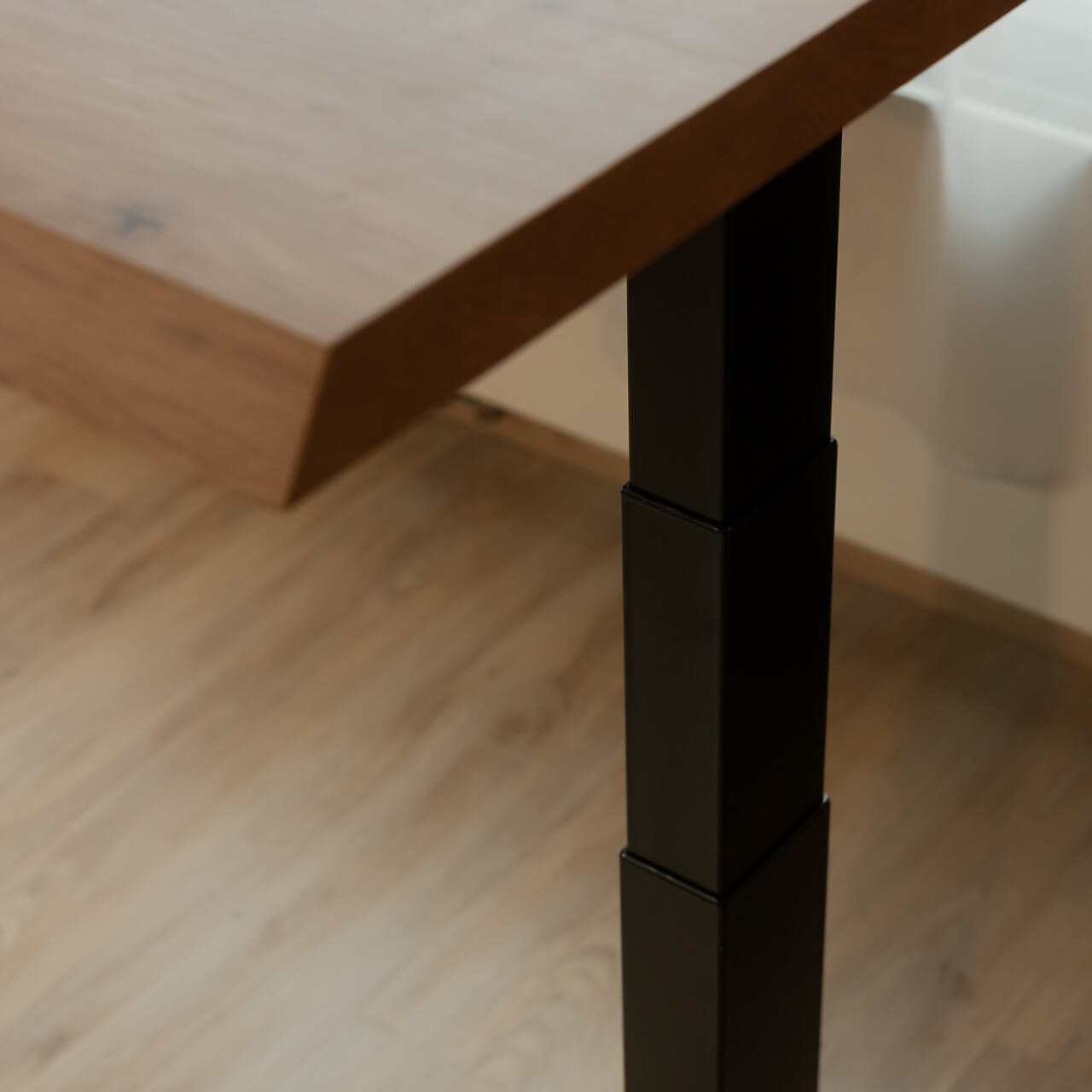 Każdy klient ma inne oczekiwania co do rozstawu nóg stołu, ewentualnego wystawania blatu poza obrys nóg czy lokalizacji kontrolera. Niektórzy wolą, aby nogi znajdowały się tuż przy krawędziach blatu, inni preferują ich przesunięcie bardziej do środka. Podobnie kwestia umiejscowienia kontrolera zależy od indywidualnych preferencji. Z tego powodu blaty nie mają fabrycznie wywierconych otworów.