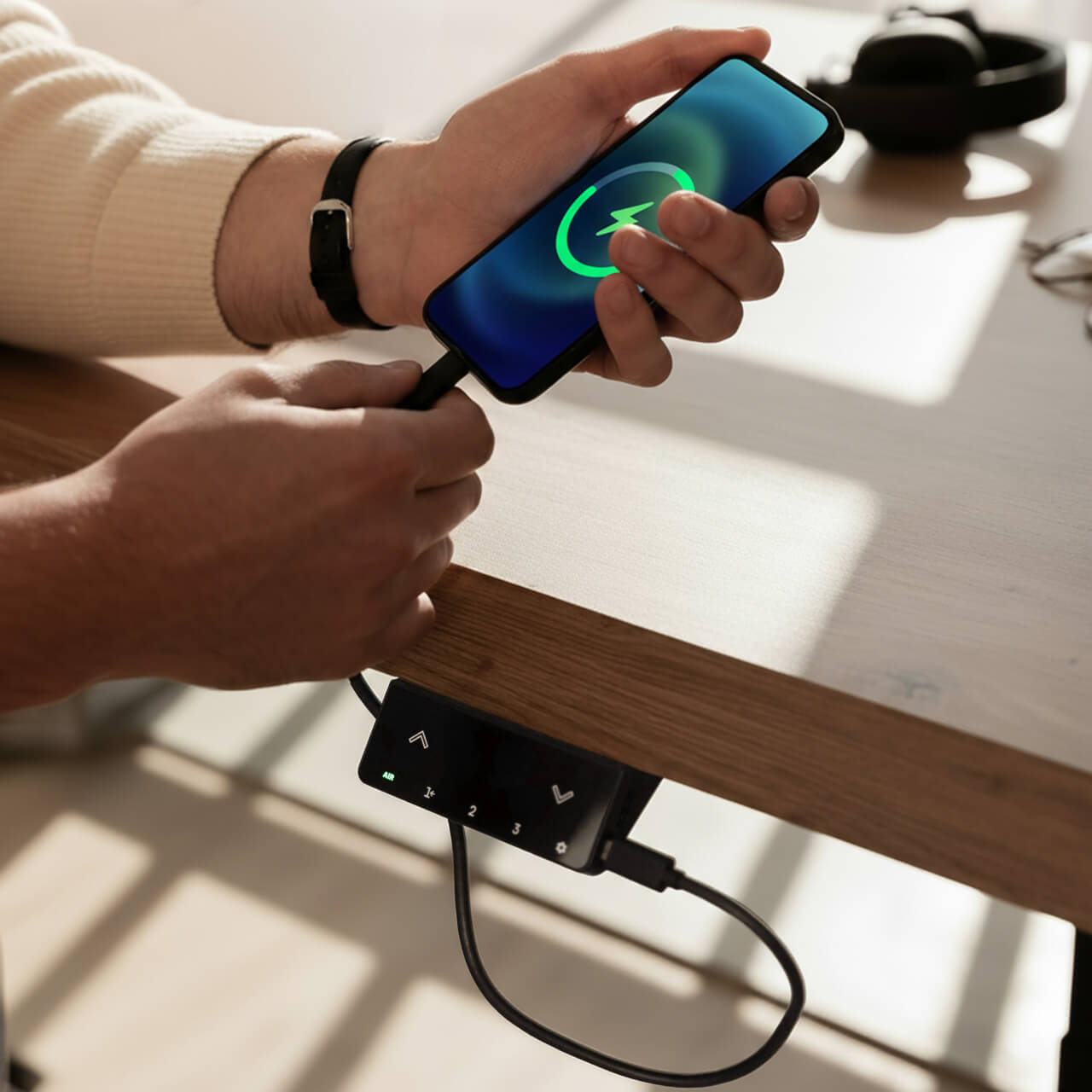 ✓ Wyjście USB-A i USB-C na panelu do ładowania telefonów i innych urządzeń elektronicznych.