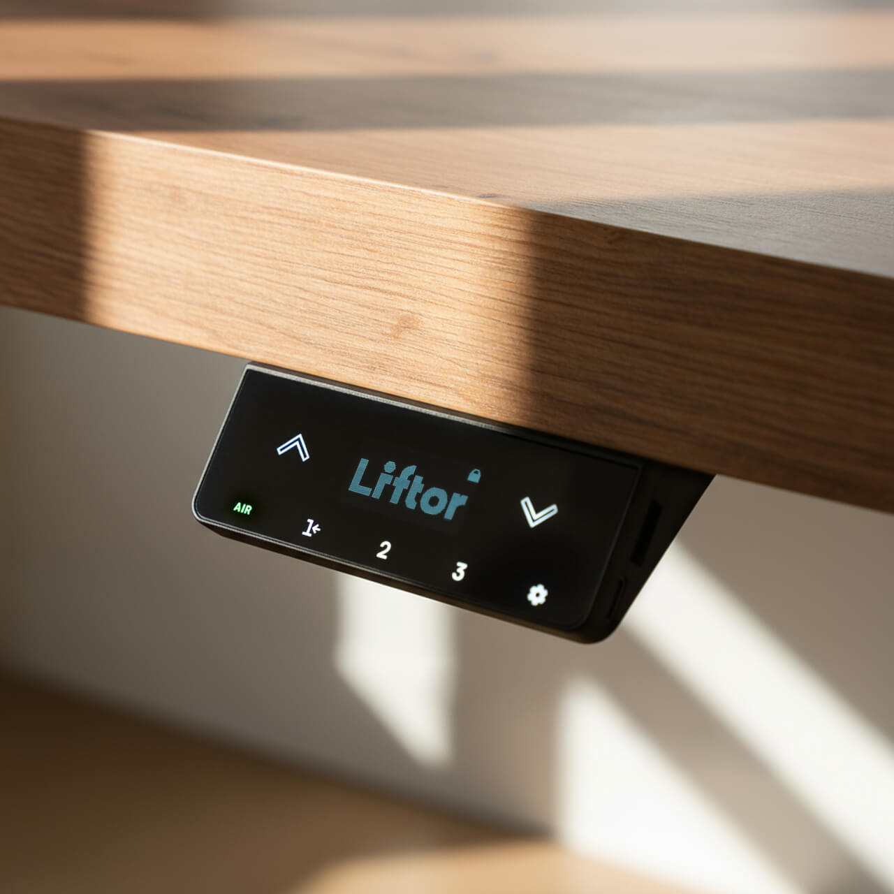Liftor Expert ma wyjątkowo mocne i stabilne 3-segmentowe nogi, dotykowy panel OLED z USB i pamięcią do 3 pozycji, podnosi z prędkością 50 mm/s dzięki dwóm silnikom i może być obciążony do 150 kg.