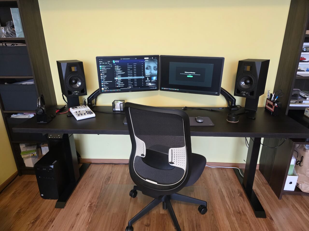 Bardzo stabilny, nawet po całkowitym podniesieniu. Moje biurko jest dość szerokie, blat ma 220 cm, jestem bardzo zadowolony z wyboru.