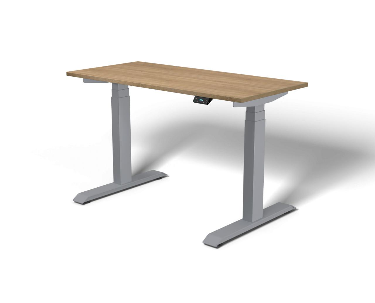 Wysokość biurka można łatwo regulować w zakresie 61–126 cm. Dzięki płynnemu startowi i zatrzymaniu zmiana pozycji odbywa się całkowicie bez szarpnięć.