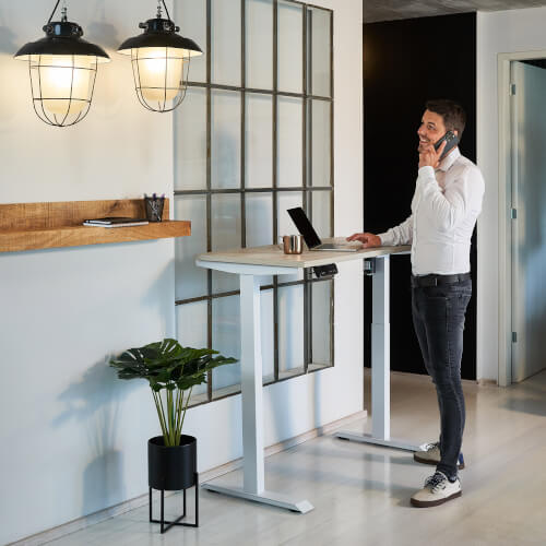 Możesz oprzeć się o nasz stół, a nawet na nim usiąść. Idealnym uzupełnieniem biurka z regulacją wysokości jest ergonomiczne krzesło biurowe, które zapewni Ci komfort zarówno w pozycji stojącej, jak i siedzącej!