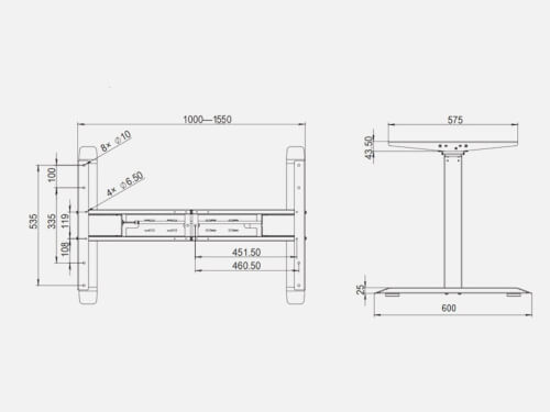Liftor Rise ma stabilne 2-segmentowe nogi, panel pamięci z wyświetlaczem LED, podnosi za pomocą jednego silnika z prędkością 20 mm/s i może być obciążony do 100 kg.