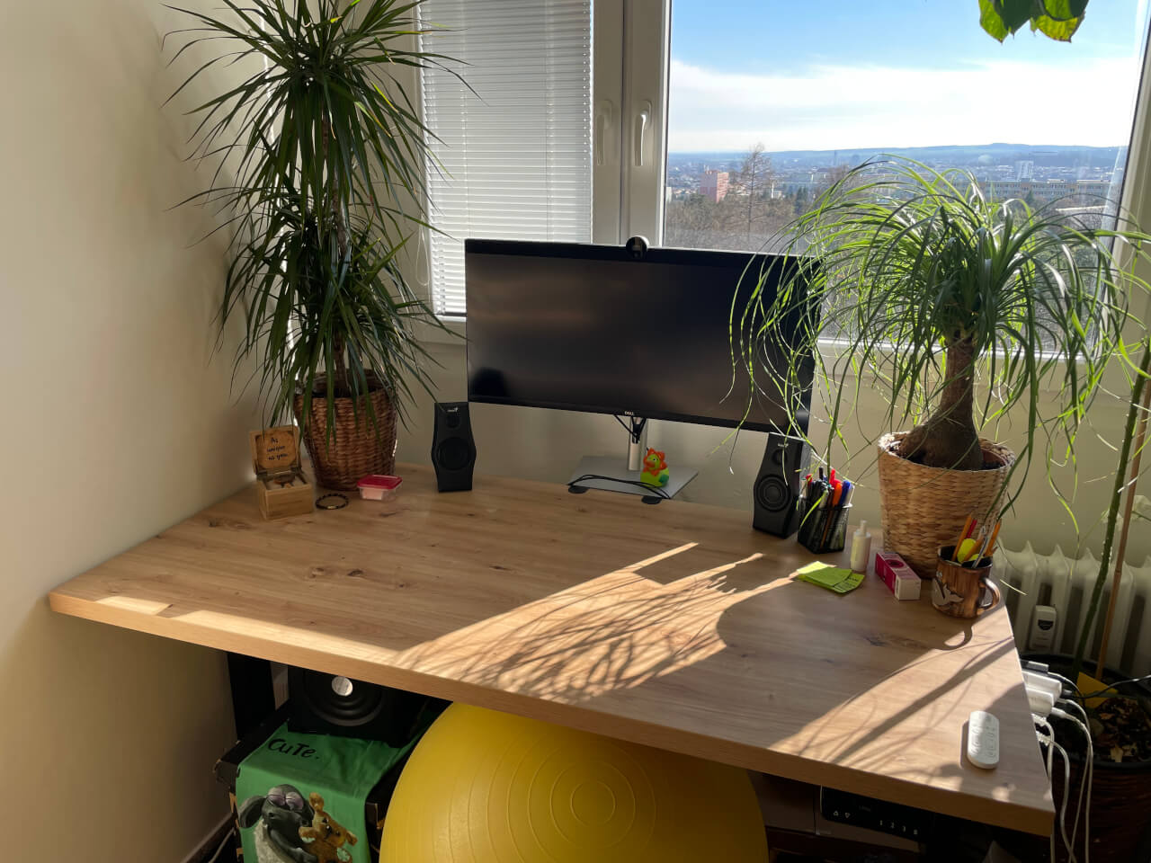 Biurko jest świetne, bardzo stabilne, a wysokie ustawienie jest praktyczne.