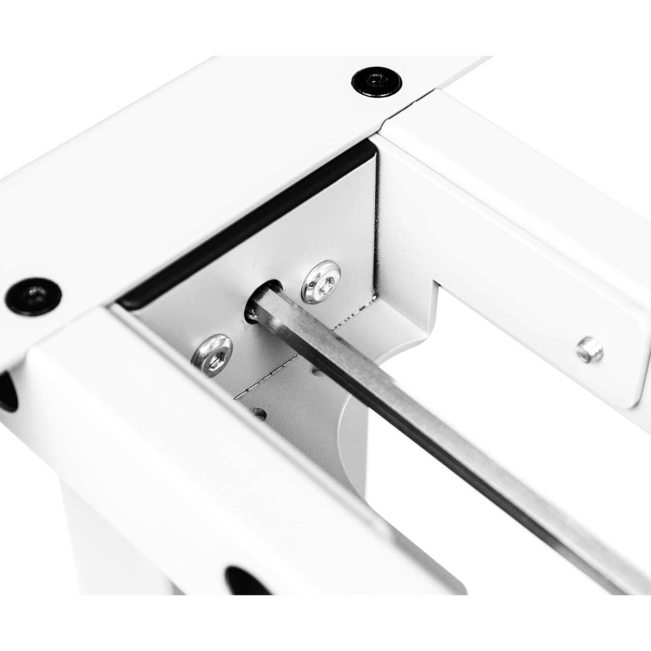 Nie musisz się martwić skomplikowanym montażem – wystarczy położyć blat na podłodze, odwrócić stelaż nogami do góry, wybrać optymalne ustawienie i przykręcić blat oraz kontroler za pomocą zwykłego śrubokręta lub wkrętarki akumulatorowej.