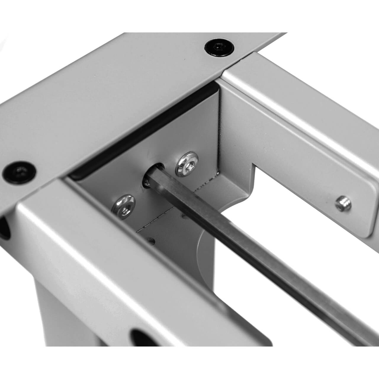 Nie musisz się martwić skomplikowanym montażem – wystarczy położyć blat na podłodze, odwrócić stelaż nogami do góry, wybrać optymalne ustawienie i przykręcić blat oraz kontroler za pomocą zwykłego śrubokręta lub wkrętarki akumulatorowej.