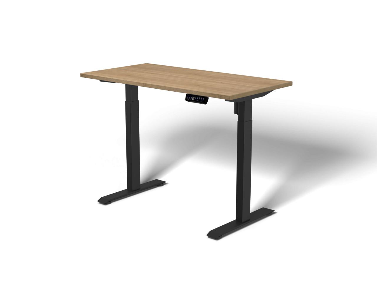 Liftor Rise ma stabilne 2-segmentowe nogi, panel pamięci z wyświetlaczem LED, podnosi za pomocą jednego silnika z prędkością 20 mm/s i może być obciążony do 100 kg.