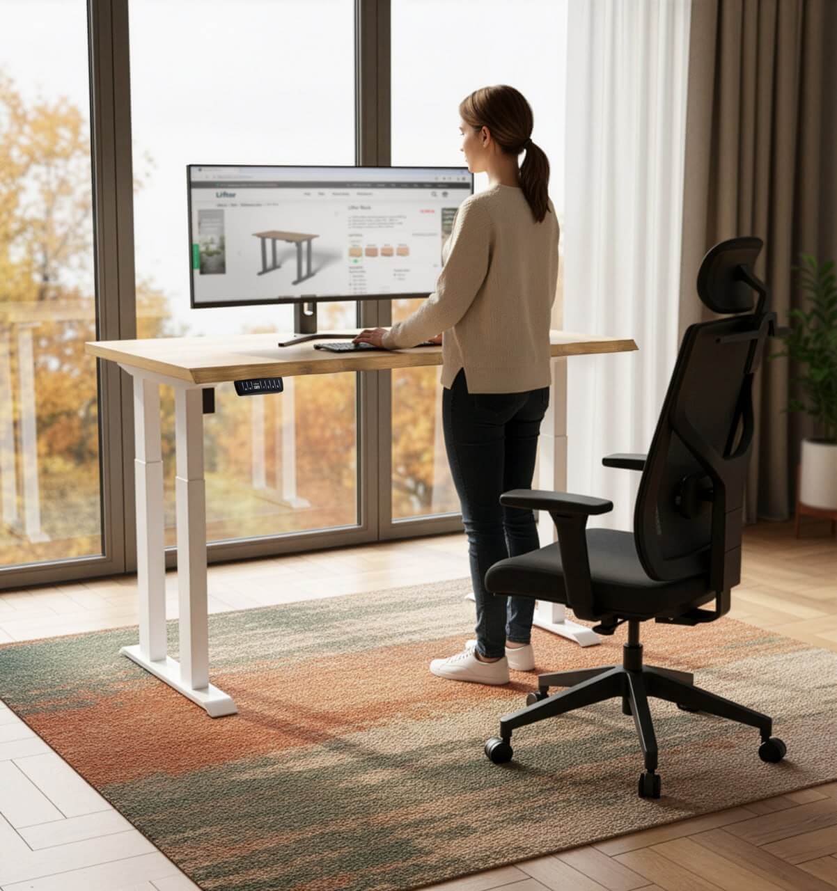 Podczas gdy większość biurek z regulowaną wysokością stoi na dwóch nogach, Liftor Rock oferuje konstrukcję z czterema solidnymi punktami podparcia. Dzięki temu jako jedyne w swojej klasie gwarantuje absolutną stabilność na każdej wysokości. Bez chybotania, bez kompromisów – tylko stabilny, pewny blat roboczy, na którym zawsze możesz polegać.