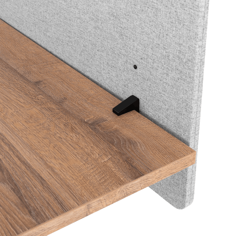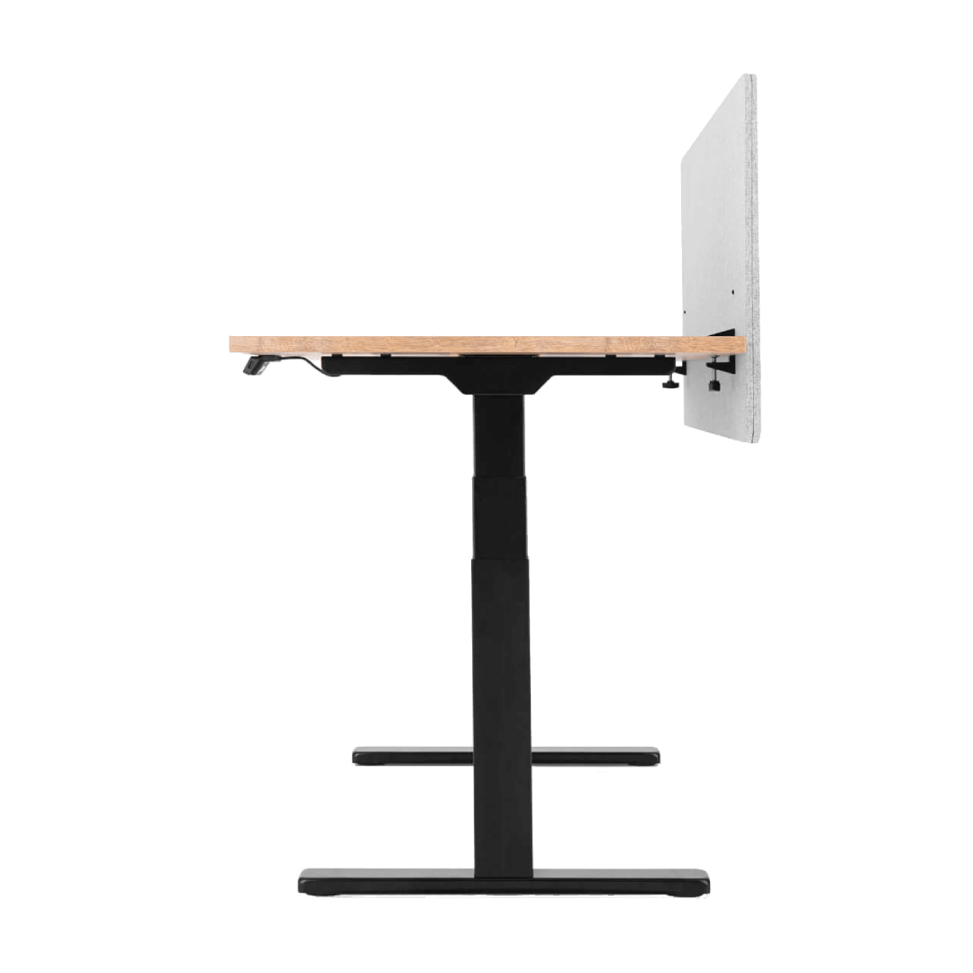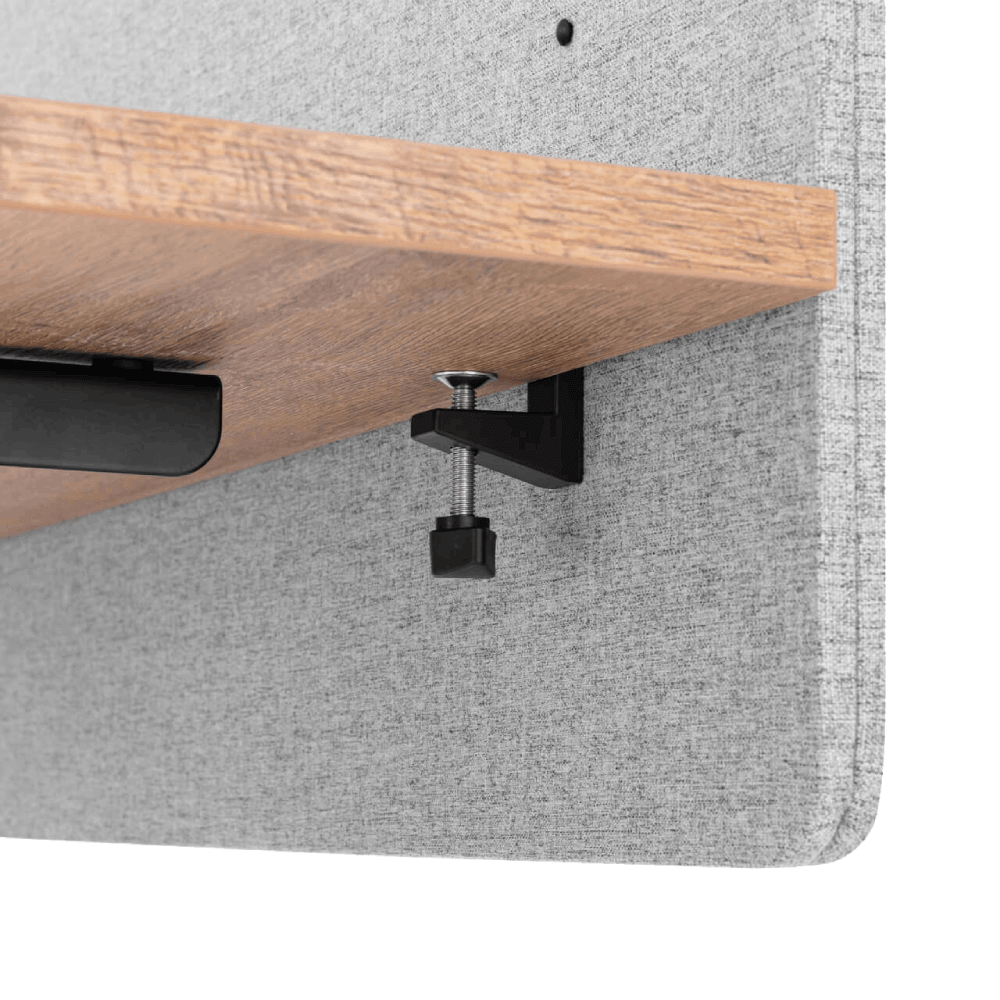 Ekran wykonany jest z połączenia PET i materiału tekstylnego, które charakteryzują się doskonałymi właściwościami akustycznymi. Dzięki temu skutecznie pochłania dźwięk i przyczynia się do stworzenia spokojnego środowiska pracy, w którym można lepiej się skoncentrować. Szary melanż nadaje ekranowi nowoczesny wygląd i doskonale wpasowuje się w każde wnętrze – zarówno biurowe, jak i domowe.