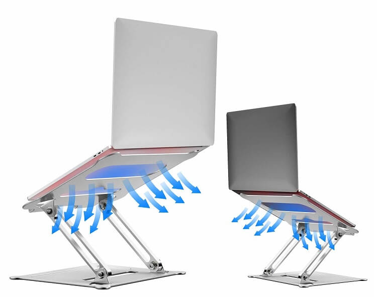 Materiał ze stopu aluminium ma praktyczne otwory wentylacyjne, jest łatwy do czyszczenia, odporny na rdzę i zarysowania. Stojak na laptopa jest kompatybilny na przykład z Apple Macbook, MacBook Pro, MacBook Air, Asus, Sony, Dell, Lenovo i innymi modelami laptopów 10 "-17".