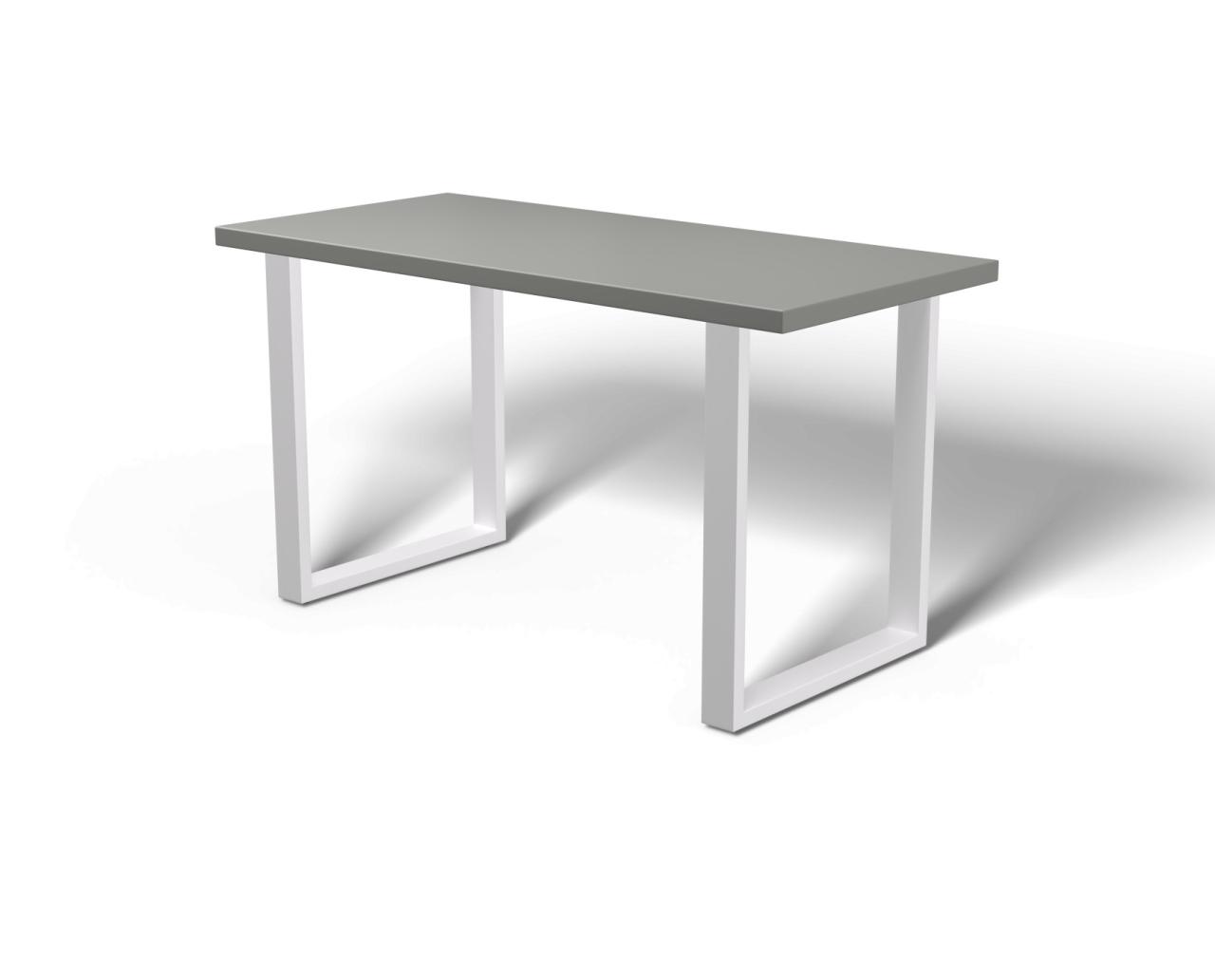 Prostokątna podstawa biurka jest bardzo solidna i trwała. Biurko wykonane jest z laminowanej płyty wiórowej dostępnej w wielu wariantach kolorystycznych.
