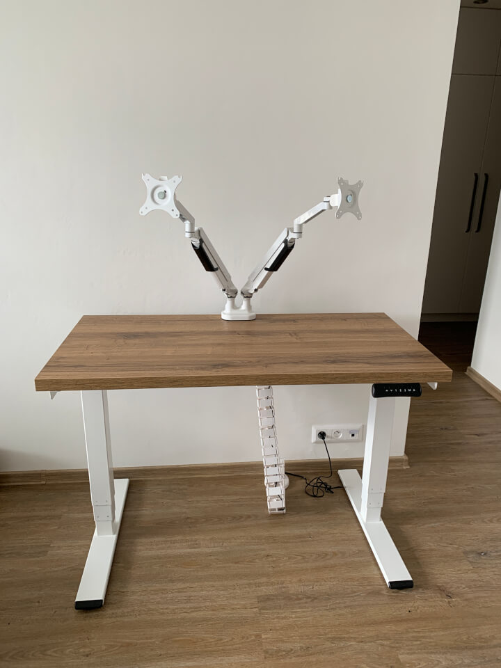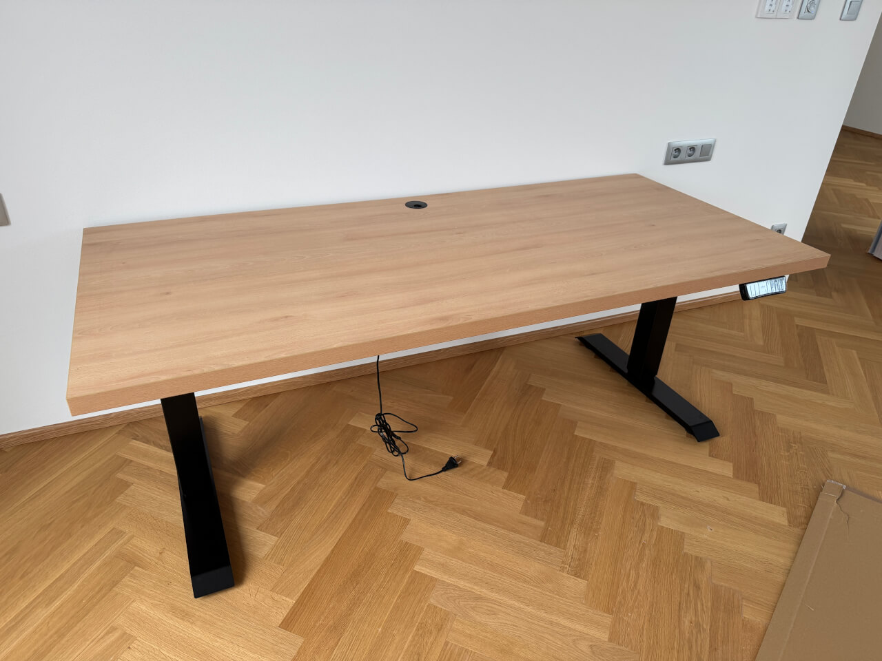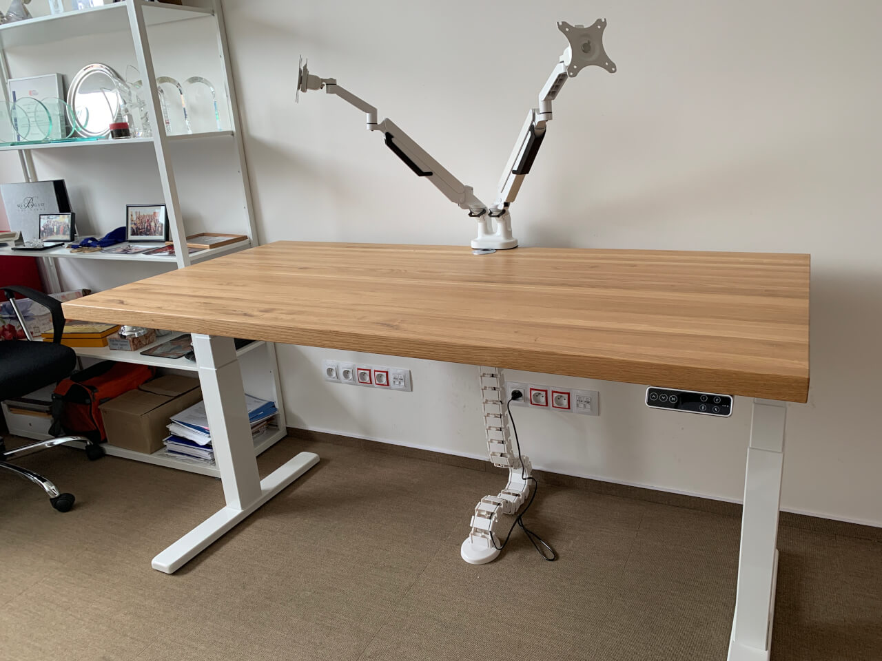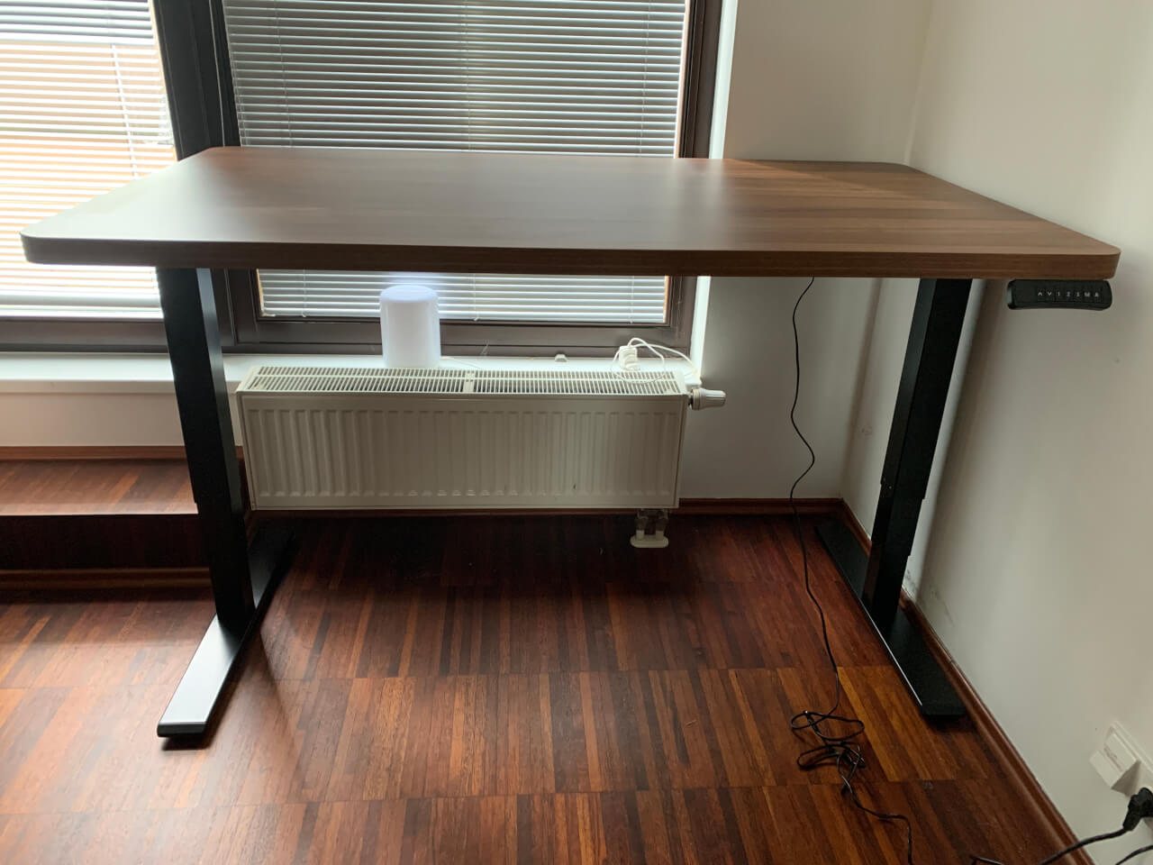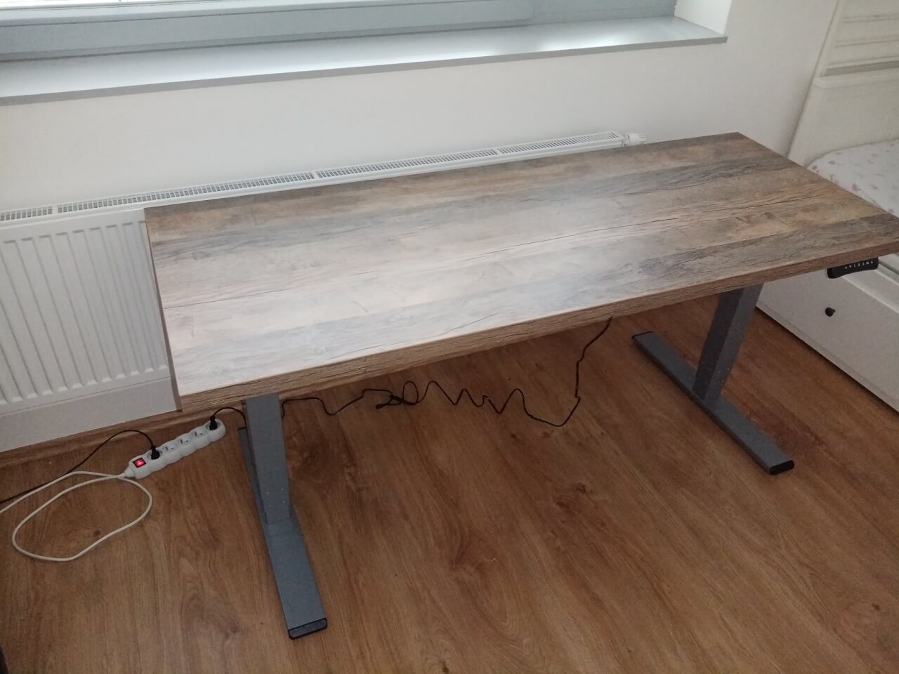 Stół jest stabilny i wiele rzeczy można zmienić (umieszczenie panelu sterowania, odległość nóg od krawędzi płyty, umieszczenie uchwytu na kable, umieszczenie uchwytu na komputer, ...).