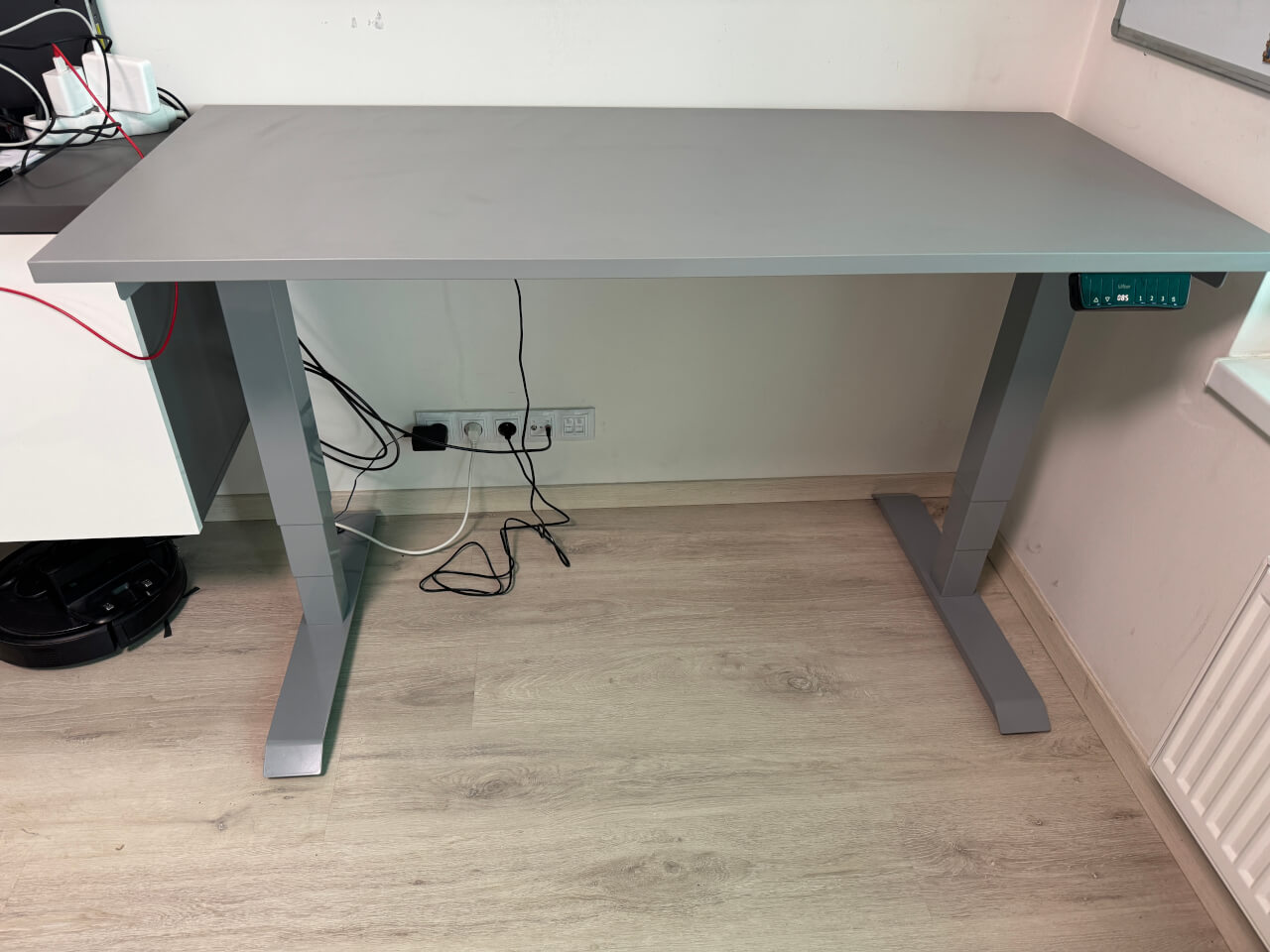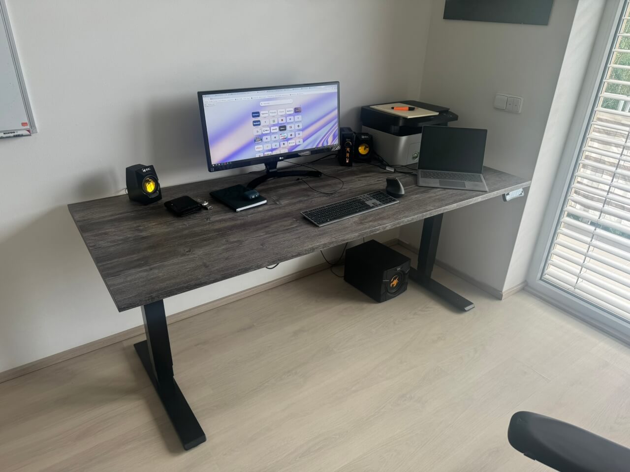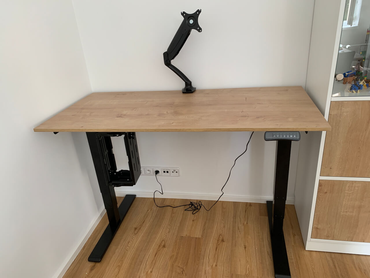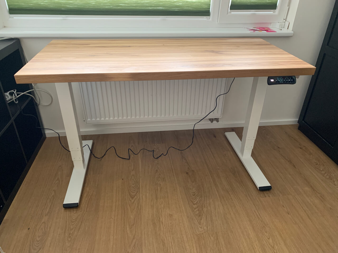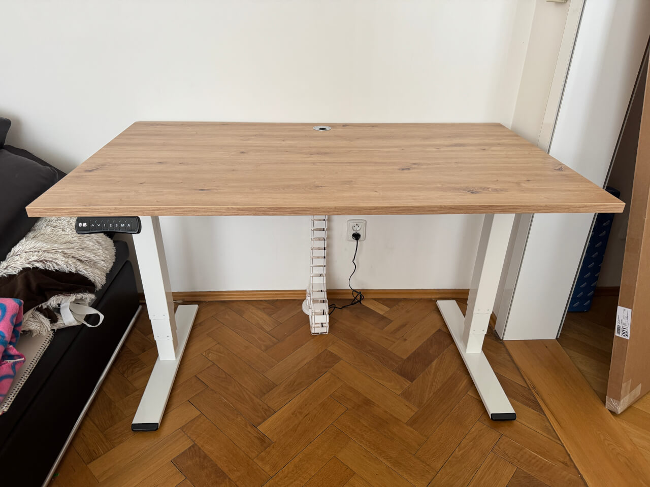 Stół jest stabilny i wiele rzeczy można zmienić (umieszczenie panelu sterowania, odległość nóg od krawędzi płyty, umieszczenie uchwytu na kable, umieszczenie uchwytu na komputer, ...).