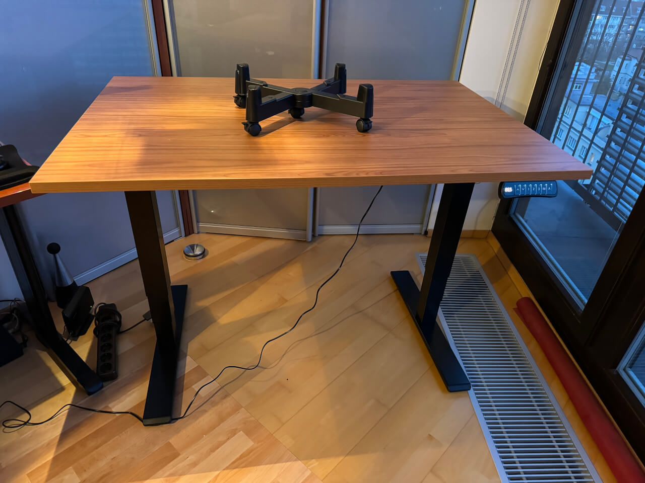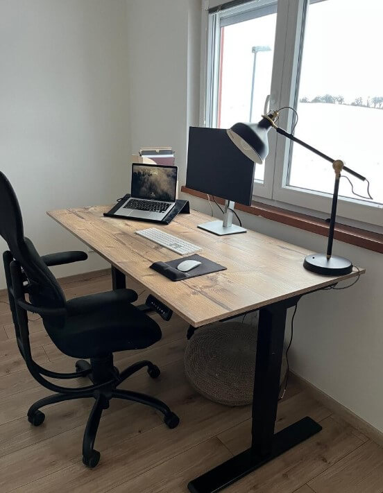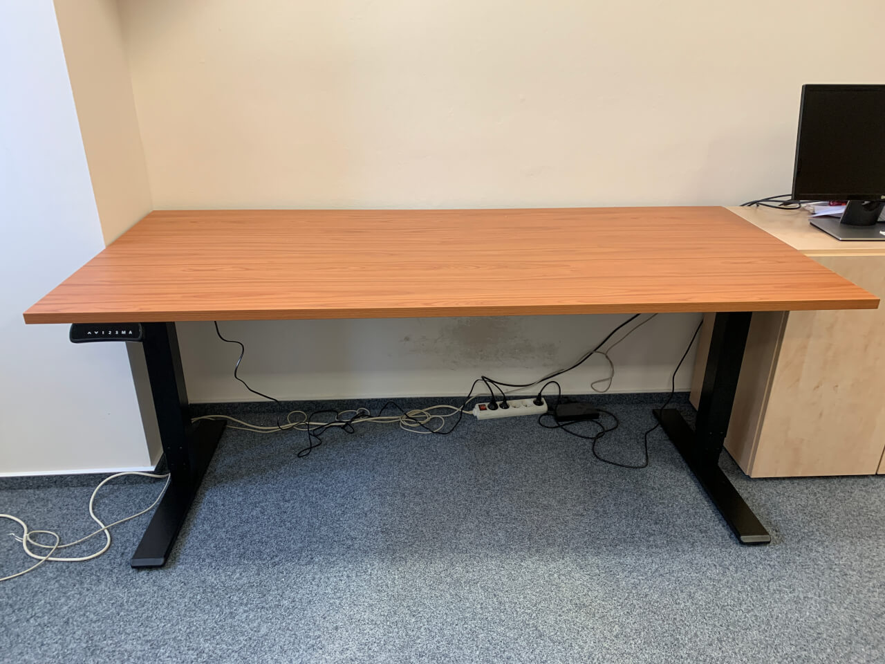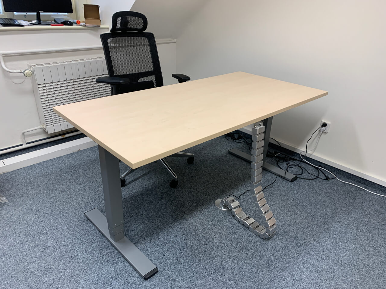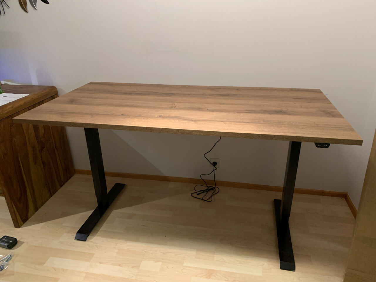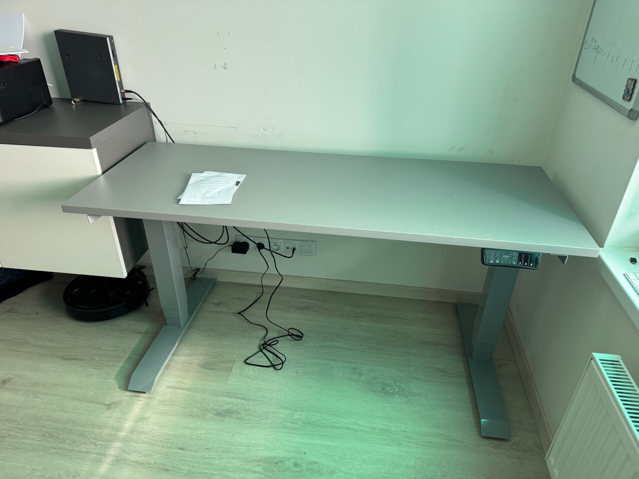 Stół jest stabilny i wiele rzeczy można zmienić (umieszczenie panelu sterowania, odległość nóg od krawędzi płyty, umieszczenie uchwytu na kable, umieszczenie uchwytu na komputer, ...).