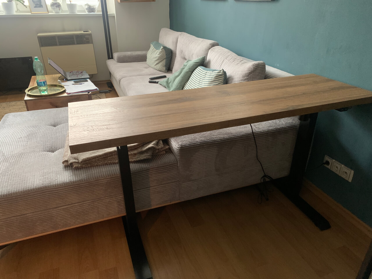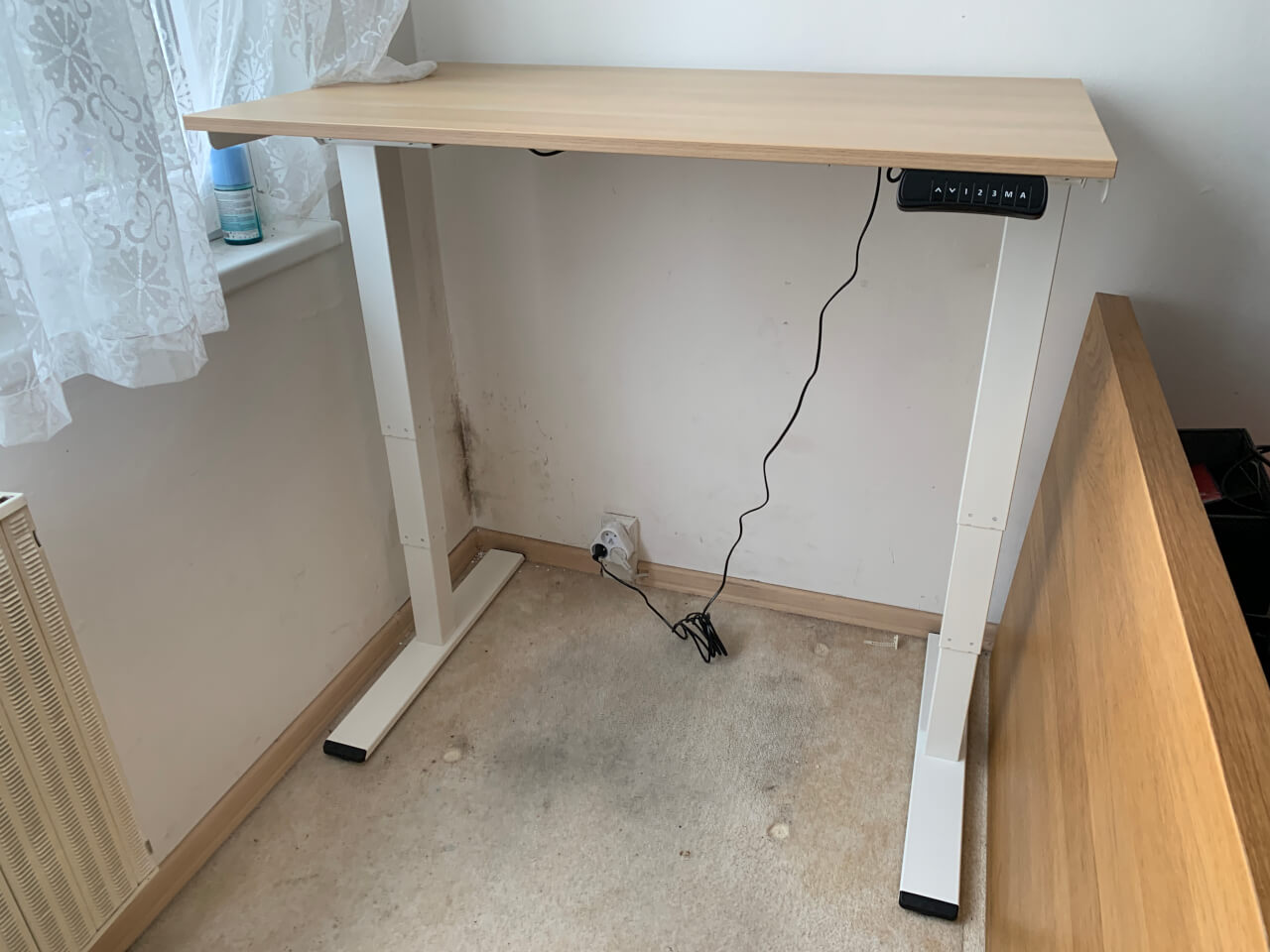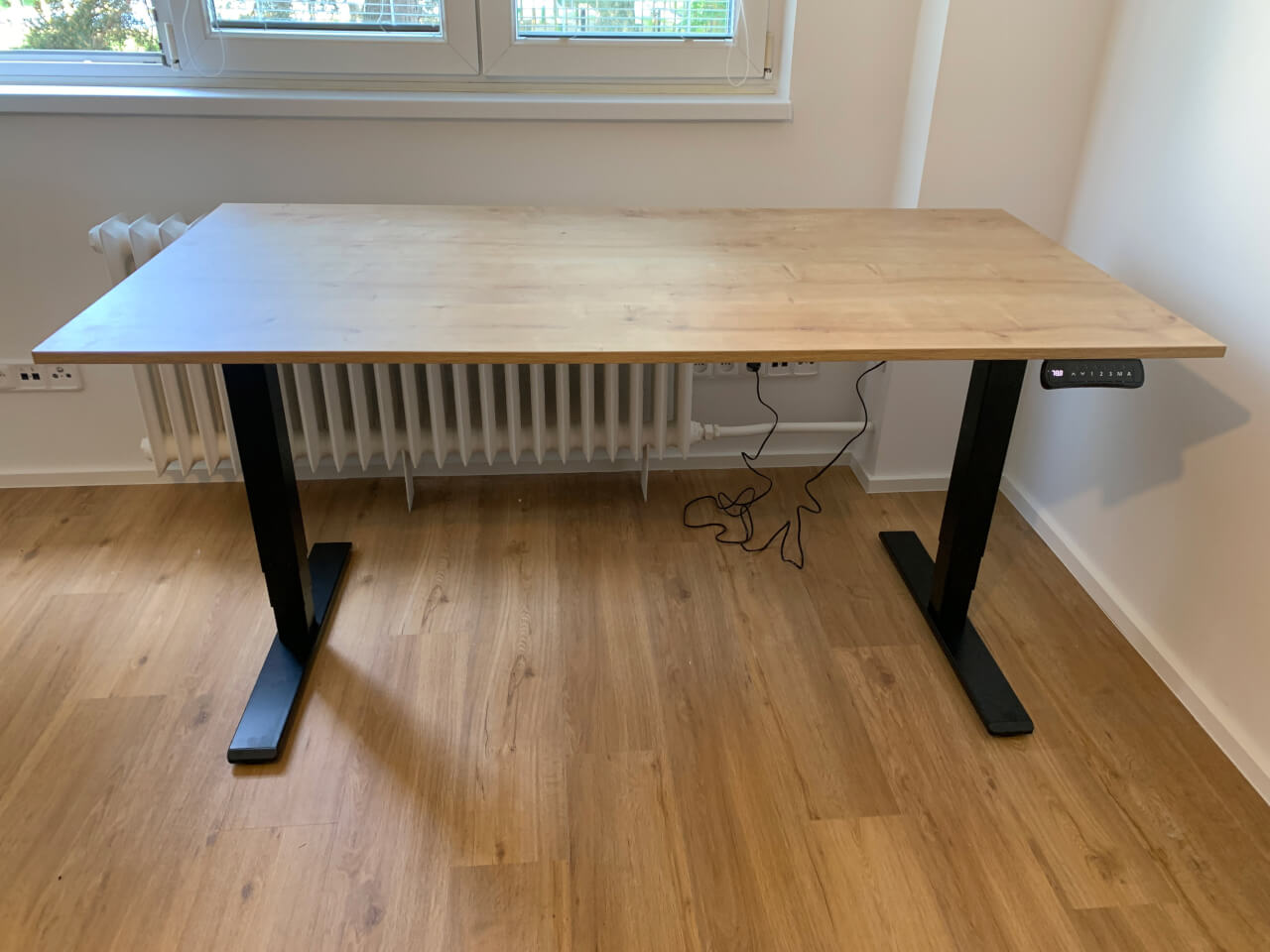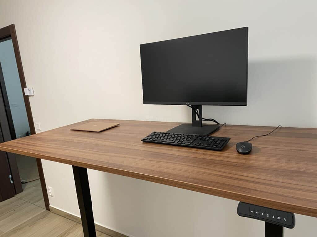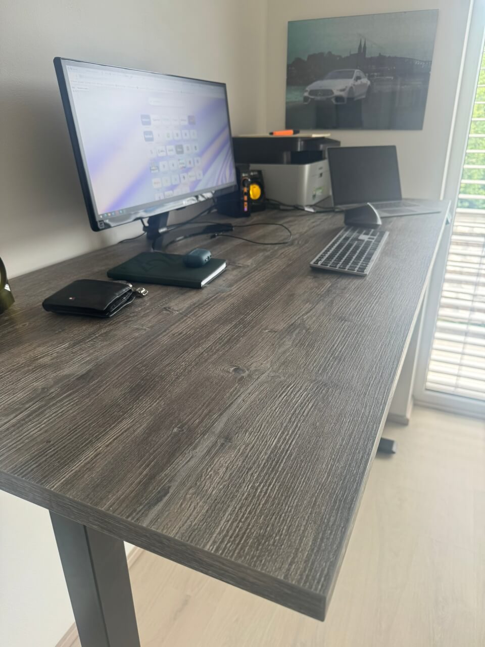 Stół jest stabilny i wiele rzeczy można zmienić (umieszczenie panelu sterowania, odległość nóg od krawędzi płyty, umieszczenie uchwytu na kable, umieszczenie uchwytu na komputer, ...).