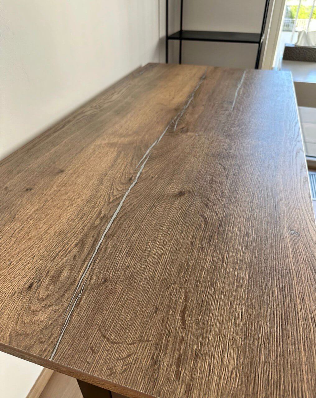 Mamy własną stolarnię i starannie dobieramy drewno. Dzięki temu blat nie wypacza się, fornir nie łuszczy się, zachowuje swój kolor nawet po latach. Możesz wybierać spośród 15 różnych dekorów jednolitego koloru, gładkiego wykończenia lub struktury drewna w 3 różnych grubościach.